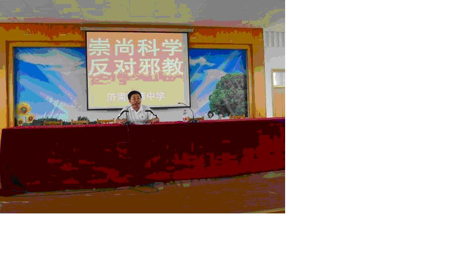 为落实教育局在学校开展以家庭拒绝邪教“四个一”活动为主题的反邪教警示教育活动精神,增强学校师生识别邪教、抵制邪教的能力,营造精神健康、文明、和谐的校园文化氛围,济南槐荫中学结合实际就开展家庭拒绝邪教“四个一”系列活动。