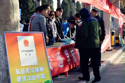 为庆祝第二个国家宪法日,弘扬宪法精神,树立宪法权威,推进宪法实施,我市广泛开展以“弘扬宪法精神 推动创新、协调、绿色、开放、共享发展”为主题的系列法治宣传活动,在全市掀起学习宣传宪法的热潮。