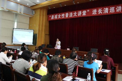 中国首部《反家庭暴力法》于今年3月1日正式颁实施,为更好地推动反家暴法的贯彻实施,进一步提高基层维权干部和广大妇女群众的依法维权意识,济南市妇联在全市启动开展了以宣传《反家庭暴力法》为主要内容的“泉城女性普法大讲堂”基层巡讲活动。活动自6月底开始至11月底结束,历时5个月,深入到10个县(市)区和部分乡镇,共举办13场,受众群体涉及法院、公安干警,镇办、村居政府工作人员,基层妇联主席、妇代会主任,巾帼志愿者、维权骨干和社区群众,受益者达3000多人。巡讲期间,还开展了多种形式的调研活动,面向不同层面的人群进行了调研、座谈、走访,广泛听取基层干部群众对普法宣传和反家暴工作的建议和要求,获得了很多有价值的意见和建议,为下步做好妇女维权工作提供了重要参考。