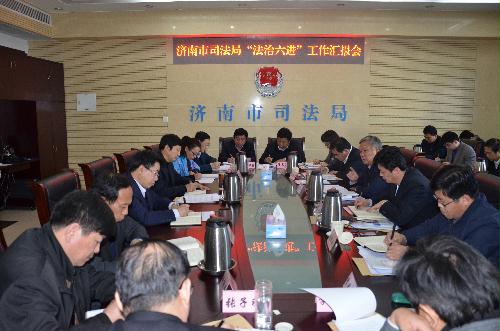 2月16日,市委常委、政法委书记李占国到市司法局调研,专题听取“法治六进”工作情况汇报。市司法局局长、市普法办主任谢圣仁汇报了市司法局和本人所联系的街道办事处“法治六进”工作情况,市司法局其他领导班子成员分别汇报了所联系街道办事处“法治六进”工作情况。李占国充分肯定了市司法局“法治六进”工作取得的成绩,对下一步开展“法治六进”工作提出了明确要求。他指出,在开展“法治六进”工作中,市司法局要发挥示范作用、引领作用、导向作用,抓好开展法治宣传、摸清“双实”信息、消除安全隐患、化解矛盾纠纷、保障群众合法权益五项任务,把握好督导落实、分类指导、分工负责的工作方法,确保“法治六进”工作取得实效,为依法服务和保障“打造四个中心、建设现代泉城”中心任务作出积极贡献。