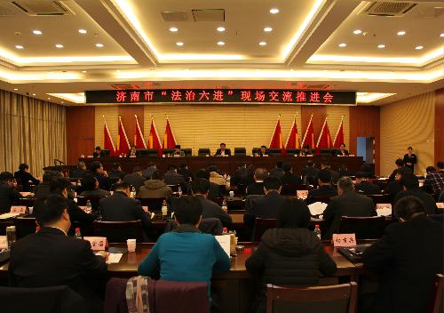 12月7日,济南市“法治六进”现场交流推进会在平阴县召开。市委副书记苏树伟出席会议并讲话,市委常委、政法委书记秦传滨主持会议。会议认真学习贯彻党的十九大精神和习近平新时代中国特色社会主义思想,全面贯彻落实我市关于“持续推进‘法治六进’活动”的部署要求,总结交流前期“法治六进”工作,就做好今后一个时期“法治六进”工作作出动员部署。